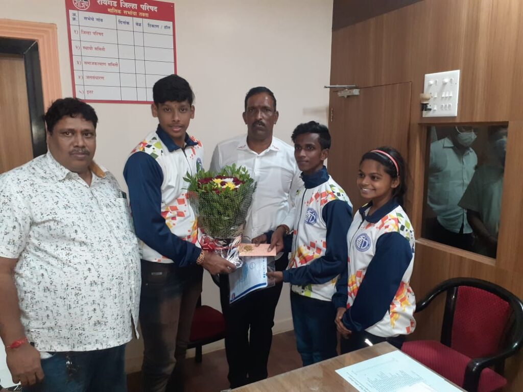 जय आणि रोहन या खेळाडूंचा समाज कल्याण सभापती दिलीप भोईर यांच्या हस्ते सत्कार