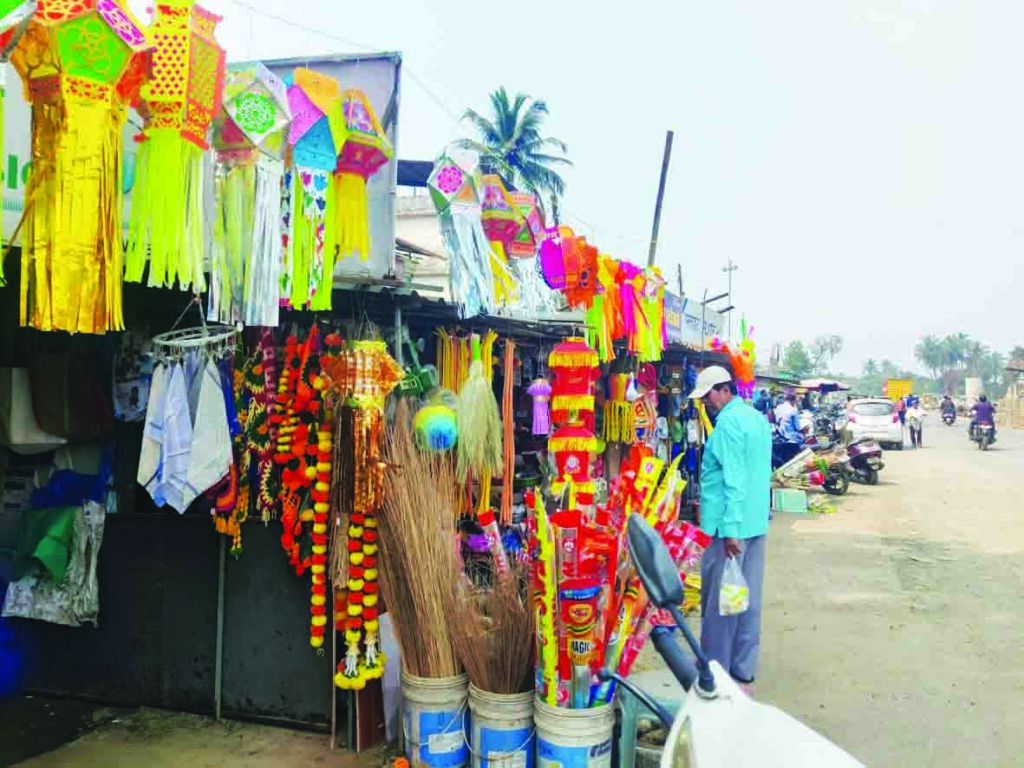 विविध प्रकारच्या साड्या, आकर्षक शर्ट्स, रेडिमेड कपडेसुद्धा मोठ्या प्रमाणावर दिसत आहेत. पावसानेसुद्धा परतीचा प्रवास केल्यामुळे बाजारपेठा गजबजल्या आहेत. मिठाईची दुकानेसुद्धा मोठ्या प्रमाणावर दिसत असून, मिठाई खरेदीरांची संख्या मोठी आहे. बळीराजा मात्र आपल्या शेतीच्या कापणीमध्ये मग्न दिसत आहे. कारण, पावसाचा भरोसा नसल्यामुळे जे काही शेतात उरले आहे, ते आपल्या घरी आणण्याचा प्रयत्न करत आहे.