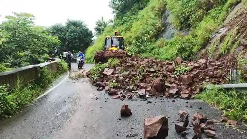 कर्जत तालुक्यातील मुसळधार पावसामुळे पहाटे साडेचार वाजता नेरळ–माथेरान घाटातील जुमापट्टी येथील नांगरखिंड भागात डोंगराचा काही भाग खचून रस्त्यावर माती व दगड कोसळले. त्यामुळे घाटमार्ग काहीकाळ पूर्णपणे बंद झाला होता. याबाबत माथेरान अधीक्षक सुरेंद्रसिंग ठाकूर आणि माजी नगराध्यक्ष मनोज खेडकर यांनी सदर बाब सार्वजनिक बांधकाम विभागाच्या संबंधितांना कळविल्यानंतर सार्वजनिक बांधकाम विभाग व स्थानिक टॅक्सी चालक मालक संघटनांनी ही माती जेसीबीच्या साह्याने हटवून घाट रस्ता मोकळा करून दिल्याने वाहतूक पुन्हा सुरळीत सुरू झाली. “दरड कोसळली तेव्हा जर रस्त्यावर वाहनं असती तर मोठी दुर्घटना घडली असती,” अशी चर्चा नागरिकांमध्ये रंगली. विशेष म्हणजे, माथेरान घाटात दरड कोसळण्याची ही मागील महिनाभरातील तिसरी घटना समोर आली आहे, या घाट रस्त्याच्या सुरक्षिततेबाबत गंभीर प्रश्नचिन्ह निर्माण झाले आहेत.