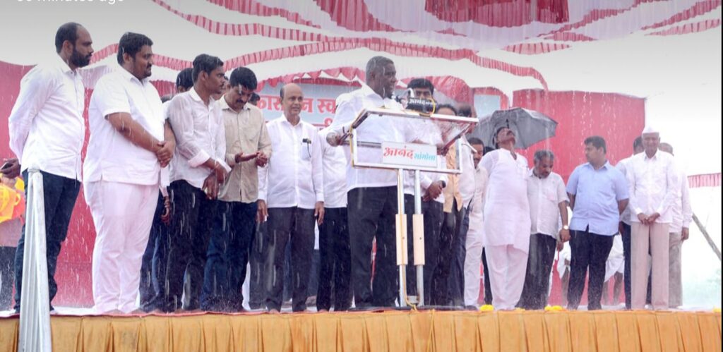 आ.जयंत पाटील हे भाषण करण्यासाठी उभे राहिले त्यावेळी पावसानेही जोरात सुरुवात केली.त्या परिस्थितीतही पावसात भिजत त्यांनी उपस्थितांशी संवाद साधला.उपस्थितांनीही सभामंडपातील खुर्च्या चक्क डोक्यावर घेत त्यांचे भाषण ऐकले.