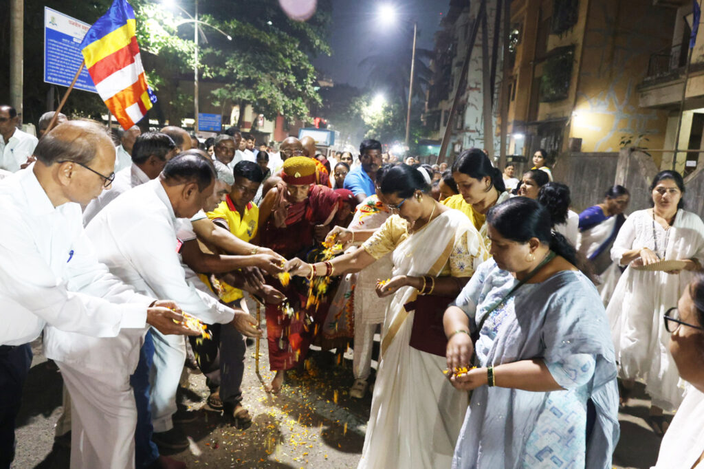 भदंत न्यान ज्योती महाथेरो यांच्या सामाजिक क्रांती अभियानाला सुरुवात झाली आहे. दादर येथील चैत्यभूमी ते भीमाकोरेगाव येथील शौर्यभूमी असे त्यांच्या धम्म पदयात्रेचे मार्गक्रमण आहे. दरम्यान, खांदा वसाहत येथे त्यांचे उत्स्फूर्त स्वागत करण्यात आले. त्यांच्यावर खांदा वसाहतीच्या मुख्य प्रवेशद्वारापासून फुलांच्या पुष्पवृष्टीत पदयात्रेचे स्वागत करण्यात आले. हे स्वागत येथील मूलगंध कुटी बुद्ध विहार येथे पार पडले. त्यानंतर बुद्ध विहारात बुद्ध वंदना घेण्यात आली. त्यानंतर भदंत न्यान ज्योती महाथेरो यांनी उपस्थितांना प्रवचनाद्वारे सामाजिक परिवर्तन, समता व बंधुत्वाचा संदेश दिला. यावेळी खांदा वसाहतीतील बौद्ध बांधव, महिला वर्ग, लहान मुले तसेच ज्येष्ठ नागरिक मोठ्या संख्येने उपस्थित होते.