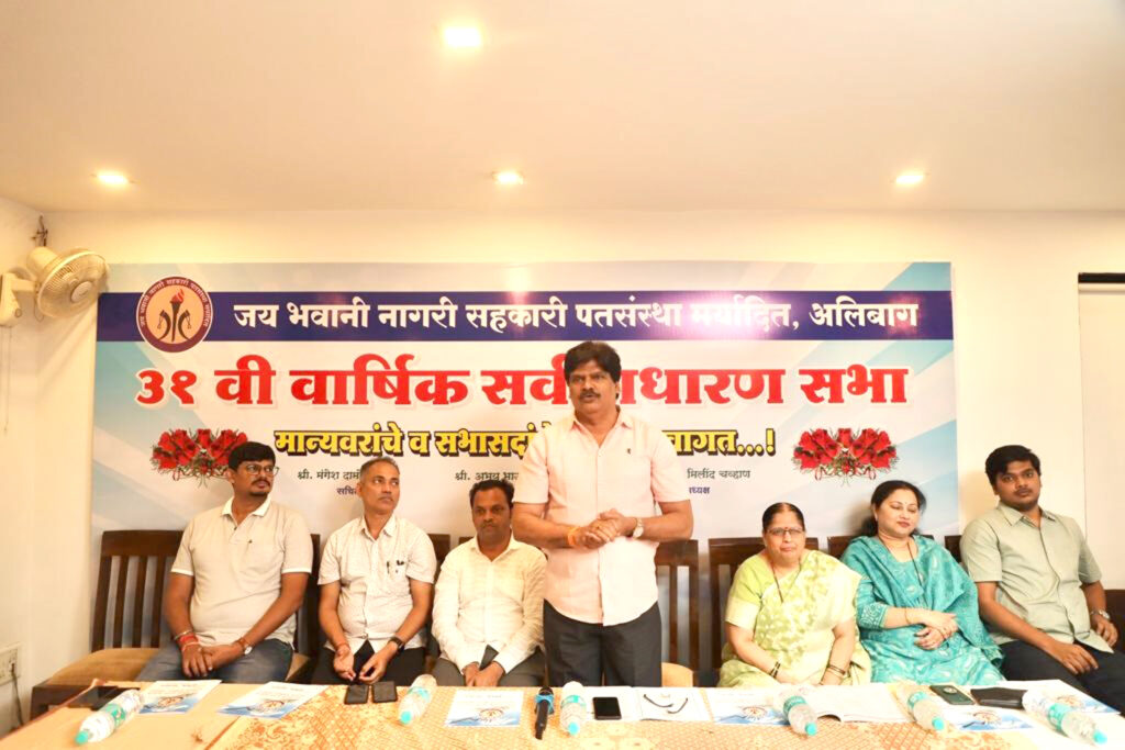 जयभवानी नागरी सहकारी पतसंस्था, अलिबागची 31 वी वार्षिक सर्वसाधारण सभा रविवार, 27 ऑगस्ट रोजी इस्रायल आळी, अलिबाग येथील हॉटेल चिरागच्या सभागृहात आयोजित करण्यात आली होती. याप्रसंगी संस्थेचे अध्यक्ष ॲड. मिलिंद चव्हाण, उपाध्यक्ष अभय म्हामुणकर, सचिव मंगेश म्हात्रे, खजिनदार गीता धर्माधिकारी, संचालक अनिल गोळे, सुचिता चव्हाण, सिद्धांत चव्हाण, तज्ज्ञ संचालक रोहन चिमणे, निवृत्त शासकीय लेखा परीक्षक- श्रेणी 1 संदीप गोठीवरेकर, व्यवस्थापिका शिल्पा देशमुख आदी उपस्थित होते. याप्रसंगी संस्थेचे अध्यक्ष ॲड. मिलिंद चव्हाण बोलत होते. त्यांनी पुढे म्हटले की, पतसंस्थेची नवीन अद्ययावत इमारत पुढील काही वर्षात उभी करण्याचा आपला प्रयत्न असणार आहे. या सभेत संचालक अनिल गोळे यांनी प्रारंभी संस्थेचा अहवाल वाचन केला. तर निवृत्त शासकीय लेखा परीक्षक- श्रेणी 1 संदीप गोठीवरेकर यांनी उपस्थित सभासदांना मार्गदर्शन केले. याच सभेत अध्यक्ष ॲड. मिलिंद चव्हाण, निवृत्त शासकीय लेखा परीक्षक- श्रेणी 1 संदीप गोठीवरेकर, साहित्यिक उमाजी केळुसकर यांचा सत्कार आणि ठेवीदार, कर्जदार, सभासदांच्या गुणवंत पाल्यांचा सन्मान करण्यात आला. या वार्षिक सर्वसाधारण सभेसाठी 300 सभासद उपस्थित होते. ही वार्षिक सर्वसाधारण सभा यशस्वी करण्यासाठी सर्व संचालकांबरोबरच लेखनिक जयेश सुतार, प्राची जयेश सुतार, मदतनीस जगदीश म्हात्रे यांनी परिश्रम घेतले.