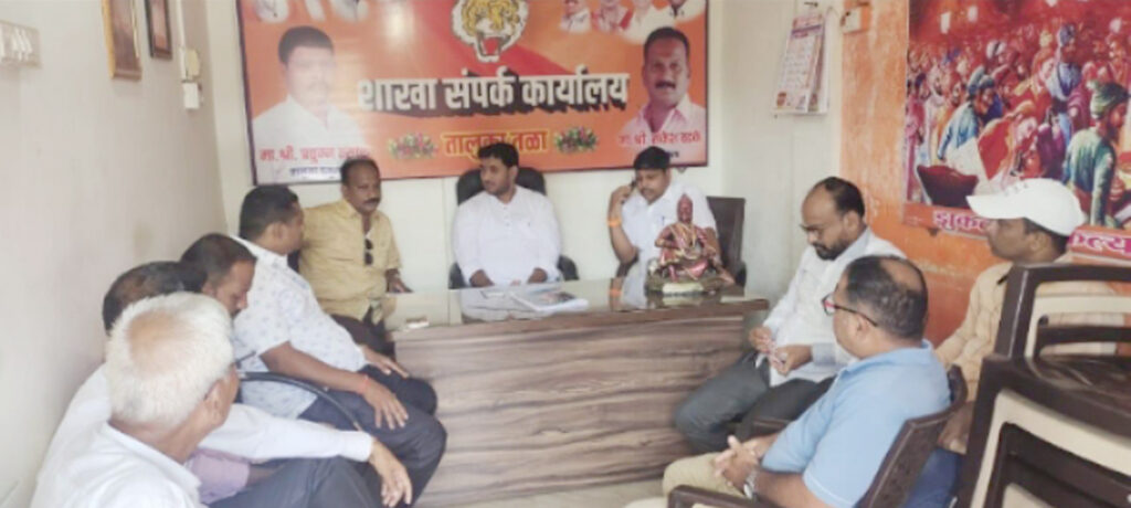 तळा तालुका शिवसेना-युवासेना शिंदे गटाची आढावा बैठक युवासेना द. रायगड जिल्हाप्रमुख, श्री. विपुल उभारे यांच्या प्रमुख उपस्थितीत शिवसेना शाखा संपर्क कार्यालय, तळा येथे आयोजित करण्यात आली होती.यावेळी आम.भरत गोगावले यांच्या माध्यमातून विकासकामे करण्याचा निर्धार व्यक्त करण्यात आला.