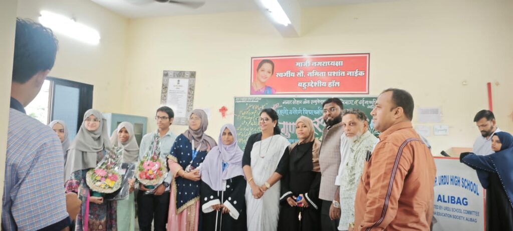 अलिबाग नगरपरिषदेच्या माजी उपनगराध्यक्षा ॲड. मानसी म्हात्रे, नजात सोशल अँड एज्युकेशनल ट्रस्ट, अलिबागचे संस्थापक अध्यक्ष लायन डॉ. साजिद शेख व सहसचिव फिरदौस शेख, उर्दू माध्यमिक शाळा व्यवस्थापन समिती सदस्य रमजान सय्यद, उर्दू प्राथमिक शाळा व्यवस्थापन समिती अध्यक्ष आरिफ हकीम, उर्दू माध्यमिक शाळा शिक्षक, पालक समिती अध्यक्ष शाहनवाज शेरखान, मुख्याध्यापिका सबिहा चिविलकर व फरहीन धायरेकर यावेळी उपस्थित होते.