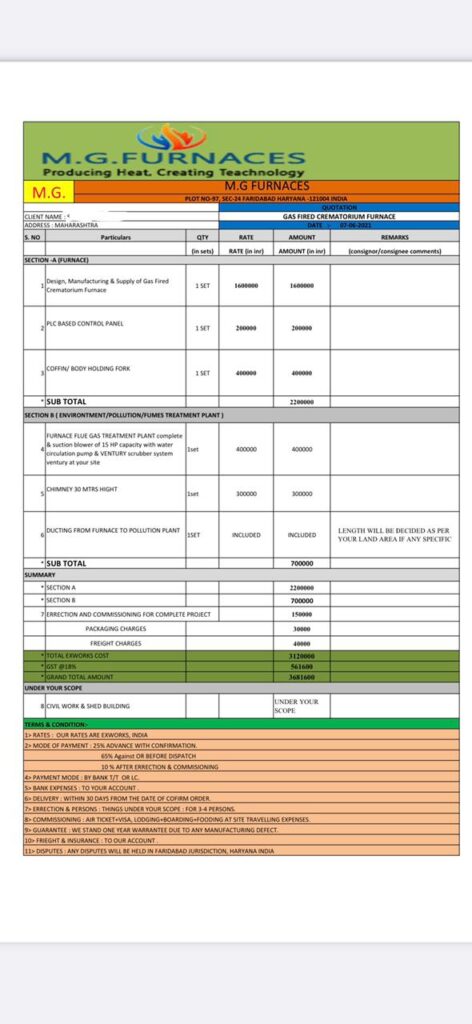 या शवदाहिनींसाठी 91 लाख 35 हजार रुपयांची प्रशासकीय मान्यता देण्यात आली आहे. त्यासाठी पालकमंत्री अदिती तटकरे यांच्या उपस्थितीत भुमीपूजनही करण्यात आले. या शवदाहिन्यांसाठी खुल्या निविदा मागविण्यात आल्या नसल्याने ठराविक ठेकेदाराकडूनच प्रस्ताव सादर करण्यात आले. त्यानुसार 91 लाख 35 हजार रुपयांच्या खर्चाला प्रशासकीय मान्यता जिल्हाधिकारी निधी चौधरी यांनी दिली आहे. इतर कंपन्यांचे दरपत्रक पाहिले तर प्रत्यक्षात सर्व खर्च पाहता 36 लाख 81 हजार 600 रुपयांच्या खर्चात शवदाहिनी उभी करता येते. बांधकामासाठी 20 लाख रुपये अधिक केल्यास जास्तीत जास्त 50 ते 55 लाखात शवदाहिनी चांगल्या पद्धतीने उभारता येणे सहज शक्य आहे. असे असताना 91 लाख 35 हजार रुपयांचा अनाठायी खर्च करण्याचे कारण काय, असा प्रश्न निर्माण झाला आहे.