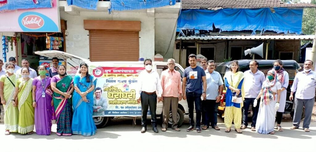 अलिबाग तालुक्यातील पर्यटन स्पॉट असलेल्या नागाव गावात ग्रामपंचायतीतर्फे विशेष मोहीम म्हणजेच मिशन कवच कुंडल अशी 100% कोव्हिड लसीकरण मोहीम राबविण्यात आली. नागाव गावात दि.14 आणि 18 ऑक्टोबर रोजी ही मोहीम यशस्वीरित्या राबविण्यात आली. मिशन कवच कुंडल अंतर्गत ग्रुप ग्रामपंचायत नागाव व आरोग्य उपकेंद्र यांच्यामार्फत घरोघरी जाऊन उर्वरित नागरिकांचे लसीकरण करण्यात आले. सिद्धिविनायक मंदिर ते नागाव हायस्कूल तसेच नागाव बंदर असे लसीकरणाचे स्वरूप होेते. आत्तापर्यंत एकूण 102 ग्रामस्थांना घरोघरी जाऊन लस देण्यात आली. नागाव गाव हा पुर्णपणे कोरोनामुक्त करू असे आश्वासन गावचे सरपंच निखिल मयेकर यांनी यावेळी दिले.