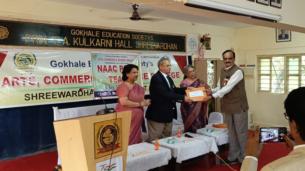 श्रीवर्धन येथील कला, वाणिज्य व विज्ञान महाविद्यालयास बंगलोर येथील नॅक अर्थात राष्ट्रीय मूल्यमापन व मूल्यांकन समितीने भेट दिली. या तज्ञ समितीमध्ये डॉ. रमेश चंद्रा (कुलगुरु,दिल्ली), डॉ. शिल्पी वर्मा व डॉ. अनुराधा रॉय यांचा समावेश होता. त्यांनी सर्व विभागातील प्रगतीचा अहवाल पीपीटीद्वारे सादर केला. 2017-18 ते 2021-22 या मागील पाच वर्षांच्या कामकाजाचे सूक्ष्मपणे मूल्यमापन केले. तसेच महाविद्यालयातील माजी विद्यार्थी व पालक, आजी विद्यार्थी, प्राध्यापक व प्राध्यापकेतर कर्मचारी यांच्याशी स्वतंत्रपणे संवाद साधून अनेक प्रश्नांच्या माध्यमातून पालकांच्या, विद्यार्थ्यांच्या, प्राध्यापक व प्राध्यापकेतर कर्मचा-यांच्या समस्या , अपेक्षा, अडचणी व वस्तुस्थिती समजावून घेऊन गोखले महाविद्यालयास नॅकचे मबफ मानांकन देण्यात आले. नॅक यशस्वितेसाठी प्राचार्य डॉ. श्रीनिवास जोशी, डॉ.वाल्मिक जोंधळे, डॉ.निलेश चव्हाण, डॉ. कल्याणी नाझरे, प्रा.पंकज गमे,प्रा. सागर कुंभार, उपप्राचार्य किशोर लहारे, डॉ. योगेश लोखंडे, प्रा. संतोष लंकेश्वर, डॉ. विलास व्हनकट्टे, सर्व शिक्षक व शिक्षकेतर कर्मचार्यांनी विशेष परिश्रम घेतले.