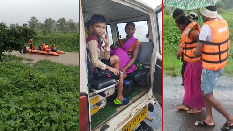 विदर्भातील गडचिरोली, चंद्रपूर जिल्ह्यातही काही नद्यांना पूर आला आहे. याच पुराच्या पाण्यात एनडीआरएफचे जवान अनेकांसाठी मदतीला धावून येत आहेत. गरोदर असलेल्या कलावती (20) ह्या मूळच्या आशिफाबाद, राज्य तेलंगणा येथील असून मौजा, चिक्याला, ता. सिरोंचा येथे नातेवाईकांकडे वास्तव्यास आल्या होत्या. या दरम्यान, एकीकडे पाऊस सुरू असताना रात्री पोटात दुखायला लागल्याने स्थानिक महसूल/आरोग्य पथकाने वेळीच चिक्याला ते परसेवाडा येथील टेकडा येथे भरती केले. त्यामुळे, मध्यरात्री 1.45 वाजता त्यांची नॉर्मल प्रसूती झालेली होती.