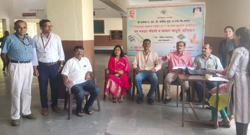 उरण तालुक्यातील रयत शिक्षण संस्थेच्या वीर वाजेकर महाविद्यालय फुंडे येथील निवडणूक साक्षरता मंडळ अंतर्गत राष्ट्रीय सेवा योजना, विद्यार्थी संसद मंडळ, सांस्कृतिक विभाग व निवडणूक साक्षरता मंडळाच्या माध्यमातून अगामी विधानसभा निवडणूकीच्या पार्श्वभूमीवर निवडणूक आयोगाने केलेल्या अहवानानुसार नव मतदारांबद्दलचा संक्षिप्त कार्यक्रम संपन्न झाला. यावेळी महाविद्यालयातच आय.टी. विभागाच्या विशेष सहकार्याने नुकतेच 18 वर्षे पूर्ण झालेल्या विद्यार्थ्यांची ऑनलाईन नोंदणी प्रक्रिया राबविण्यात आली.