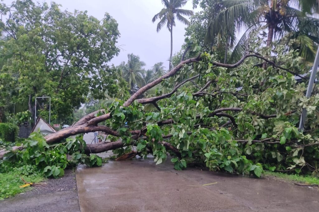 सततच्या पडणाऱ्या पावसामुळे अलिबाग-रेवदंडा मार्गावर आक्षी (शिंत्रे गल्ली) जवळ बुधवारी सकाळी झाड कोसळून पडण्याची घटना ताजी असतानाच पुन्हा संध्याकाळी ७ च्या सुमारास त्याच ठिकाणी सागाचे झाड पडले असून अलिबाग-रेवदंडा वाहतूक पूर्णपणे ठप्प झालेली आहे. स्थानिकांकडून सहाण बायपास रस्त्याचा अवलंब करण्याचे आवाहन करण्यात येत आहे. तसेच, महावितरणचे नुकसान होऊन परिसरातील वीज पुरवठा पूर्णपणे खंडित झालेला आहे.