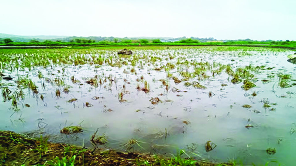 गडनदीच्या पुरामुळे भातशेती कुजली