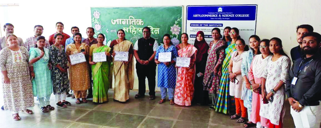 प्रभाकर पाटील एज्युकेशन सोसायटीच्या कला, वाणिज्य आणि विज्ञान महाविद्यालयाच्या महिला सक्षमीकरण कक्षातर्फे जागतिक महिला दिन काव्यवाचन मैफिली स्वरूपात साजरा करण्यात आला.