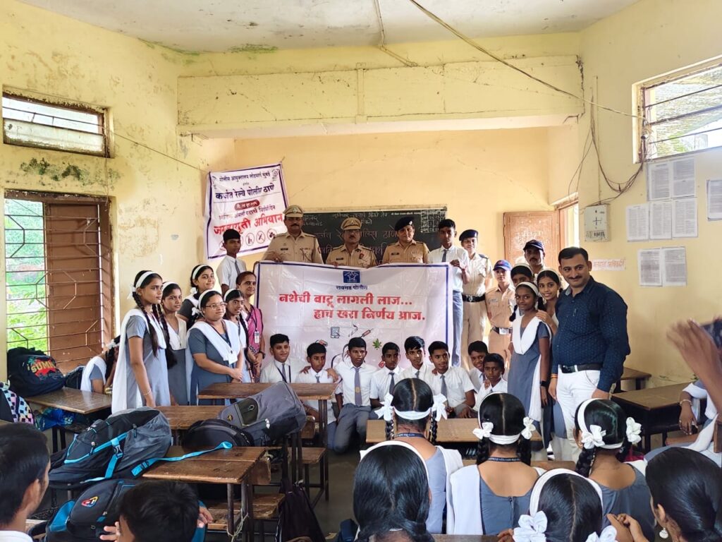 कर्जत पोलीस ठाण्याच्या माध्यमातून अंमली पदार्थ विरोधी दिवस साजरा करण्यात आला. त्यानिमित्ताने सहा माध्यमिक शाळांमध्ये पोलीस दलातर्फे विविध कार्यक्रम सादर करून जनजागृती निर्माण करण्यात आली. यावेळी तासगावकर महाविद्यालय, अभिनव महाविद्यालय तसेच कडाव शाळा, रा.जि.प शाळा भिसेगाव, रा.जि प शाळा गुंडगे, आश्रम शाळा पिंगलस, डोंबे हायस्कूल दहिवली यांना भेटी देऊन तेथील विद्यार्थ्यांना अंमली पदार्थाविरोधात जनजागृती करण्यात आली. त्यांना अंमली पदार्थाच्या सेवनापासून दुर रहावे, त्याच्या सेवनाचे दुष्परिणाम काय आहेत, याबाबत माहिती देऊन जागृती निर्माण केली. यावेळी सर्व विद्यार्थ्यांनी अंमली पदार्थ सेवन करणार नाही ह्याबद्दल सामूहिक शपथ घेतली आहे.