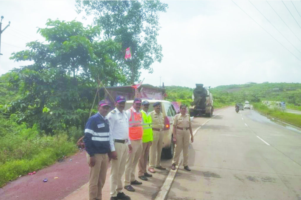 याबाबत महामार्ग वाहतुक पोलीस रत्नागिरी विभागाच्या पोलीस निरीक्षक दिपाली जाधव यांनी सांगितले की, रत्नागिरी विभागातील मुंबई गोवा महामार्गाची चिपळूण ते कसाल (जि.सिंधुदुर्ग) अंतराची हद्द रत्नागिरी विभागा अंतर्गत येते. यामध्ये असणार्या तीन महामार्ग वाहतुक पोलीस मदत केंद्राच्या माध्यमातून, पेंडॉल बंदोबस्त व सुरक्षा गस्त करण्यात येत आहे. याकरिता महामार्ग वाहतुक पोलीस मदत केंद्र कशेडी, चिपळूण, हातखंबा असे 124 नियमित व बाहेरील अधिकारी व कर्मचारी यांची नेमणूक करण्यात आली आहे.
