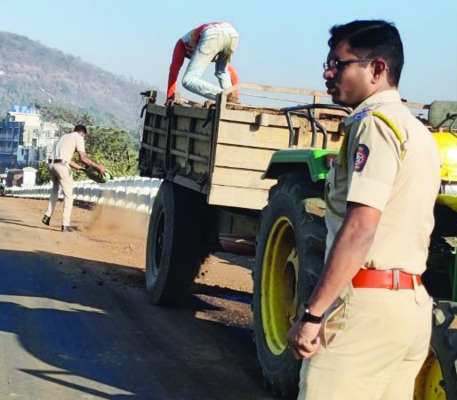 नागोठणेजवळील सर्कल वरुन रोहाकडे जाण्यासाठी असलेल्या पुलापासून ते आमडोशी फाट्याच्या अलिकडील अंतरात ऑ ईल सांडले होते. याची माहिती मिळताच नागोठणे पोलिस ठाण्याचे सहाय्यक पोलिस निरिक्षक हरेश काळसेकर यांनी तात्काळ दखल घेत रस्त्यावर माती टाकण्याचे काम यंत्रणेकडून करुन घेतल्याने संभाव्य अपघात टळले. ट्रकमधील ड्रम मधून ऑ ईल सांडण्याची ही घटना शुक्रवारी (दि.9) सायंकाळी 4.30 वाजण्याच्या सुमारास घडली होती. नागोठणे पोलिस ठाण्याचे सपोनि हरेश काळसेकर यांच्या मार्गदर्शनाखाली जतेंद्र पाटील, सत्यवान पाटील, समीर पाटील, अमोल नलावडे या पोलिसांचे पथक उपाययोजनेच्या या कार्यात उपस्थित होते.