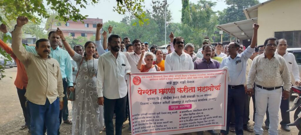 राज्य सरकारी, निमसरकारी, जिल्हा परिषद कर्मचारी, शिक्षक व शिक्षकेतर, नगरपालिका, नगरपरिषद, नगरपंचायत, ग्रामपंचायत कर्मचारी व कंत्राटी कर्मचारी समन्वय समिती, यांच्या वतीने खालापूर तालुक्यात सर्व अधिकारी कर्मचारी एकत्र येत खालापूर पंचयत समिती ते तहसील कार्यालयापर्यत घोषणाबाजी करीत दि.8 रोजी महामोर्चा काढून प्रलंबित विविध मागण्यांसाठी शासनाचा निषेध करण्यात आला, यावेळी मागणीचे निवेदन देण्यात आले.