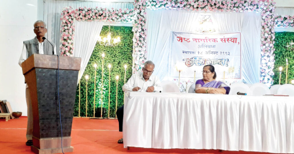 ज्येष्ठ नागरिक संस्था, अलिबागची त्रैमासिक सभा शुक्रवारी (दि.22) चेंढरे येथील भाग्यलक्ष्मी मंगल कार्यालयाच्या सभागृहात आयोजित करण्यात आली होती. या सभेच्या अध्यक्षस्थानी संस्थेचे अध्यक्ष प्रफुल्ल राऊत हे होते. या सभासदांच्या वाढदिवसानिमित्त त्यांचे अभीष्टचिंतन करण्यात आले.