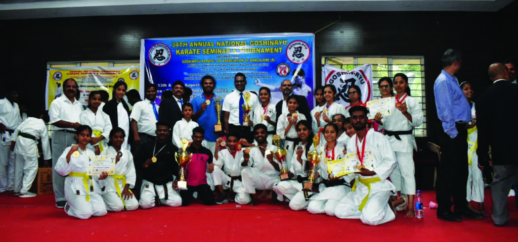 बंगलोर येथे 34 वी राष्ट्रीय कराटे स्पर्धेमध्ये रायगडच्या विद्यार्थ्यांनी कुमिते व काता प्रकारात पदके पटकावली. त्यामध्ये अमिता घरत दोन गोल्ड मेडल, अमिषा घरत एक सिल्वर व गोल्ड मेडल, कार्तिकी पाटील एक गोल्ड व एक ब्रांझ मेडल, ऋतुजा ठाकूर एक सिल्वर व ब्रॉझ मेडल, आर्वी केदारी एक गोल्ड एक सिल्वर मेडल, विनया पाटील दोन गोल्ड मेडल, नेत्रा गावंड एक गोल्ड मेडल व एक ब्रांझ मेडल, मानसी ठाकूर एक सिल्वर मेडल व एक ब्राँझ मेडल, वैदही घरत एक सिल्वर व एक ब्राँझ मेडल, समीक्षा पाटील गोल्ड व एक सिल्वर मेडल, रोहित घरत एक गोल्ड मेडल, शुभम ठाकूर दोन गोल्ड मेडल, शुभम म्हात्रे दोन गोल्ड मेडल, आकाश भिडे एक गोड व सिल्वर मेडल, ऋग्वेद जेधे एक गोल्ड एक सिल्वर मेडल, श्रेय मोकल दोन गोल्ड मेडल, श्रेयस वटाणे दोन गोल्ड मेडल, हर्षा ठाकूर एक गोल्ड मेडल, हंसिका मोकल एक गोल्ड मेडल व एक ब्रॉझ मेडल, मनस्वी पवार एक सिल्वर मेडल व एक ब्रांझ मेडल यांनी यश संपादन केले. या विद्यार्थ्यांना प्रमुख मार्गदर्शन शिहान राजू कोळी इंडिया प्रेसिडेंट गोशिन रियु, सेन्सई गोपाळ म्हात्रे रायगड प्रेसिडेंट, संतोष मोकल डेप्युटी रायगड प्रेसिडेंट, शंपाई राकेश म्हात्रे, सुलभा कोळी, अपर्णा मोकल,विघ्नेश कोळी, निकीता कोळी यांनी केले.