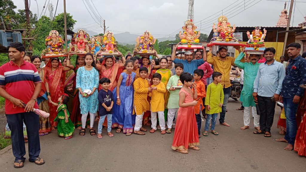 गणपती बाप्पा मोरया,पुढच्या वर्षी लवकर या,पायी हळू – हळू चाला मुखाने गजानन बोला,या जय घोषात पाच दिवसाच्या गणपती गौरी ला निरोप देण्यासाठी गणेश भक्त सज्य झाले होते.यामुळेच पाताळगंगा या ठिकाणचा परिसरात गणरायाच्या आवाजाने भक्तिमय झाले होते.विसर्जनाच्या ठिकाणी गणरायाची विसर्जनाची तयारी चालली असल्यामुळे फटक्याच्या आणि टाळ्यांच्या आवाजात गुळाला उधळून मोठ्या आनंदाने गणरायाचे विसर्जन करण्यात आले.