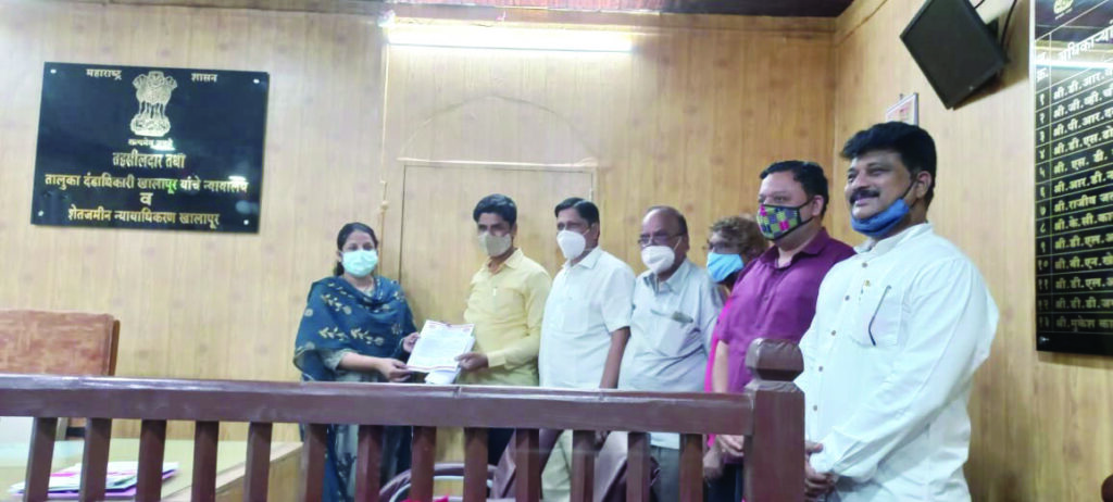 यावेळी जिल्हा सहचिटणीस किशोर पाटील, खालापूर तालुका चिटणीस संदीप पाटील, संतोष जंगम, उत्तम भोईर, खोपोली शहर खजिनदार जयवंत पाठक, रवींद्र रोकडे, कैलास गायकवाड, श्याम कांबळे, दिनेश गुरव, आबूशेठ जळगावकर, पुरोगामी संघटना जिल्हा सहचिटणीस भूषण कडव, खालापूर तालुका चिटणीस प्रसाद पाटील, खालापूर शहर चिटणीस आकेश जोशी, प्रवीण लाले, टेंबरी ग्रामपंचायत सरपंच दिलीप ठोंबरे, नरेंद्र शहा यांच्यासह प्रमुख पदाधिकारी उपस्थित होते. नायब तहसीलदार कल्याणी कदम यांनी निवेदन स्वीकारले.