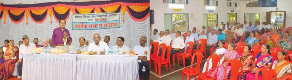 रायगड जिल्हा सेवानिवृत्त कर्मचारी संघटनेच्या मुरुड शाखेची वार्षिक सभा व मेळावा संघटनेचे जिल्हाध्यक्ष धुरंधर मढवी यांच्या अध्यक्षतेखाली माळी समाजाच्या सभागृहात घेण्यात आला. जिल्हा अध्यक्ष धुरंधर मढवी, प्र.गो.पाटील, दि.ना.गीरकर, जाधव, वावेकर या मान्यवरांच्या हस्ते प्रथम दीपप्रज्वलन करुन कार्यक्रमाची सुरुवात करण्यात आली. सेवानिवृत्त संघटनेचे अध्यक्ष सेवानिवृत्त तहसीलदार नयन कर्णिक, उपाध्यक्ष केशव साने, सचिव मनोहर दिघे, कार्यकरणी सदस्य रमेश कवळे, रविंद्र जंजिरकर, बाळकृष्ण कासार, सुभाष पाटील, सुगंधा दळवी, वैशाली कासार, आशालता बाक्कर, उषा खोत यांनी उपस्थित मान्यवरांचे स्वागत करण्यात आले.