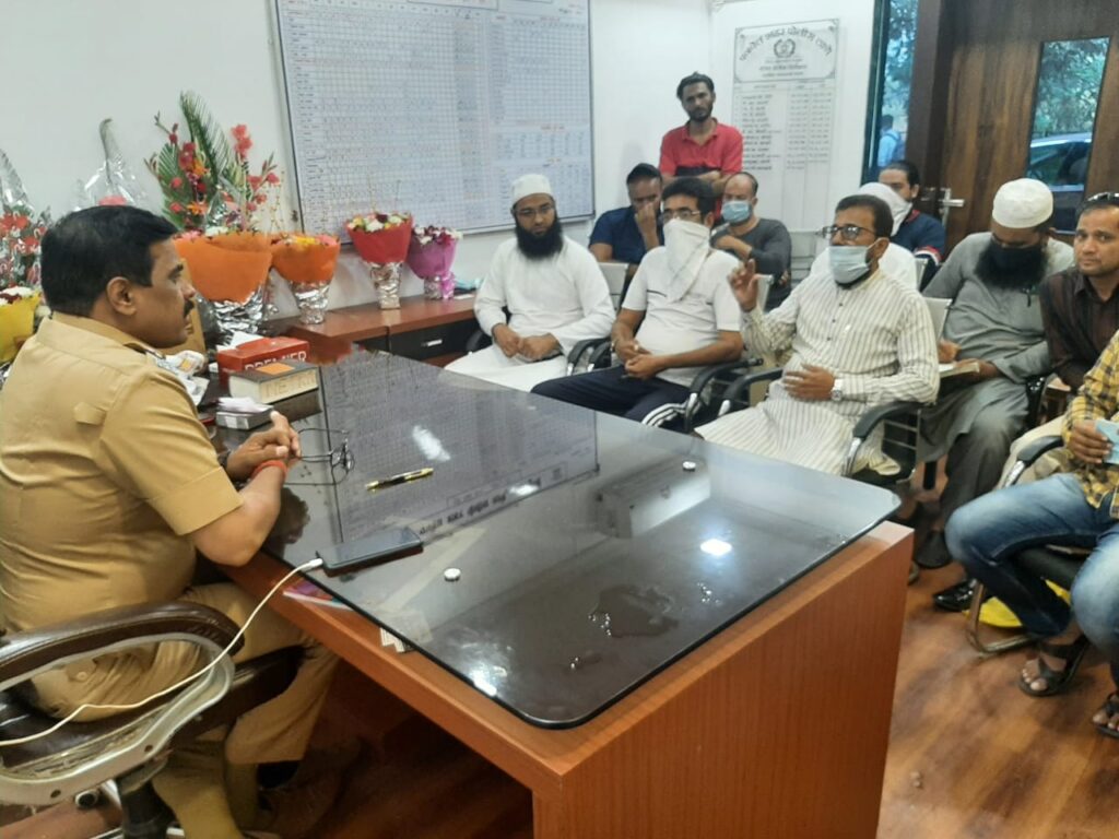 या बैठकीला वपोनि विजय कादबाने, पो.उपनिरीक्षक महाडिक, गोपनिय विभागाचे शैलेश जाधव यांच्यासह शांतता कमिटी व मोहल्ला कमिटीचे नगरसेवक मुकीद काझी, जुबेर पटेल, नाविद पटेल, अशफाक काझी, मुदसिर पटेल, जावेद पटेल, साजिद पटेल, रशिद शेख, रफिक शेख, मन्सुर पटेल, इम्रान पटेल आदी सदस्य उपस्थित होते. यावेळी मार्गदर्शन करताना वपोनि विजय कादबाने यांनी सांगितले की, सर्वांनी एकोप्याने राहणे गरजेचे असून पनवेल शहर हे सर्वांना सामावून घेणारे शहर आहे. त्याला एक इतिहास आहे. त्यामुळे सर्व जाती धर्माचे लोक एकोप्याने सण, कार्यक्रम साजरे करतात. सध्या कोरोनाची लाट परत येण्यास सुरूवात झाली आहे. यावेळी याच्याविरुद्ध लढा देण्यासाठी सुद्धा सर्वांनी लसीकरण करून घेणे आवश्यक आहे. त्याचप्रमाणे जशी मदत लागेल त्याप्रकारची मदत इतरांना करायची आहे. कोणीही अफवा पसरवू नये, या संदर्भात त्यांनी पनवेल शहर पोलीस ठाण्याशी संपर्क साधावा, असे आवाहन सुद्धा त्यांनी केले आहे.