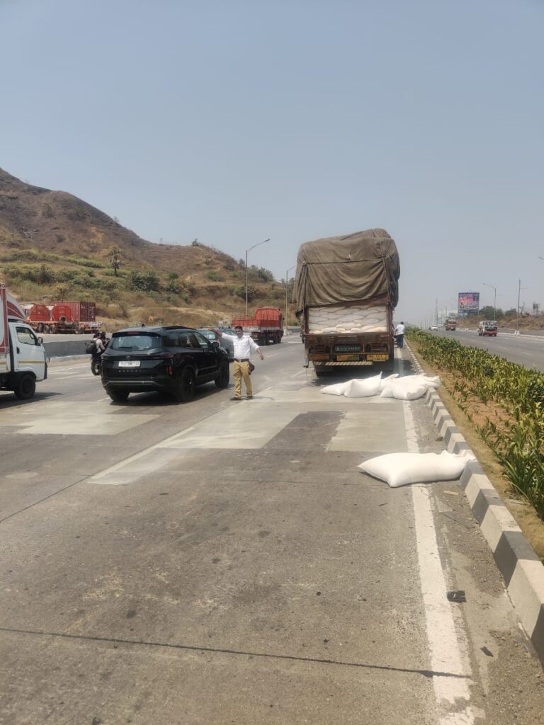 तूरडाळीचा भुसा भरलेल्या गोणी रस्त्यावर पडल्याची घटना पनवेल-जेएनपीटी महामार्गावर घडली. पळस्पेकडून जेएनपीटीकडे जाणार्या ट्रकमुळे झालेली वाहतूककोंडी वाहतूक पोलिसांच्या तत्परतेमुळे दूर झाली आहे. पळस्पेकडून जेएनपीटीकडे जाणारा ट्रक क्रमांक आर.जे. 11-जे.बी. 8182 यामध्ये तुरडाळीचा भुसा भरलेल्या गोणी होत्या. त्यातील काही गोणी रस्त्यावर पडल्याने काही काळासाठी या महामार्गावर वाहतूक कोंडी झाली होती. याबाबतची माहिती वाहतूक शाखेला मिळताच पोलीस हवालदार भोईर, पोलीस नाईक पाटील, पोलीस नाईक ढेंबरे, पोलीस शिपाई भोरे, पोलीस शिपाई घोडे आदींचे पथक घटनास्थळी त्वरित पोहचले व त्यांनी सदरचा ट्र्क तसेच, रस्त्यावर पडलेल्या गोण्या एका बाजूला करून वाहतूक सुरळीत केली.