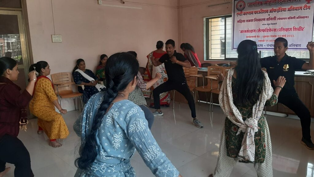 अलिबाग पंचायत समिती महिला तक्रार निवारण समिती व अँटीकरप्शन फाऊंडेशन ऑफ इंडिया डिस्ट्रिक्ट रायगड यांच्या संयुक्त विद्यमाने हे महिलांसाठी आत्मसंरक्षण शिबीर आयोजित करण्यात आले होते.