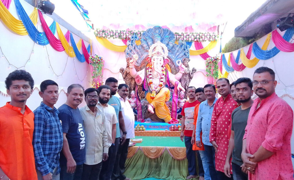 यानिमित्ताने संगीत भजन, महिलांचे हळदीकुंकू, महाआरती घेण्यात आली. यावेळी भक्तगण मोठ्या संख्येने उपस्थित होते. बुधवारी पूजाअर्चा आरती व सायंकाळी मुर्तीची गावातून भव्य मिरवणूक काढण्यात येणार असून विसर्जन सोहळा संपन्न झाला. यावेळी सुदेश घुमकर, दिनेश रावजी, योगेश जायसवाल, सुदेश भणगे , राजू पोतदार, उत्तम शेळके, महेश कोतवाल, दिनेश शाहपूरकर,राजू देऊळकर, ओमकार साखरकर, सिद्धेश किर, जितेंद्र दिवेकर, उदय थळे, अनंता कुमरोटकर,विशाल पाटील, महेश मापगांवकर, मंगेश देऊळकर,मिलिंद माळी, चंद्रकांत देऊळकर, निखिल पुलेकर,संदीप थळे, प्रभाकर निरकर,राज पवार, मुर्तीकार सतिश जोशी, जयेश देऊळकर,दिपक पवार, जितेंद्र सुर्वे, अशोक पाटील, सुरेंद्र देऊळकर,तेजस रावजी, प्रभाकर गाणार, गजानन शाहपूरकर ,कुणाल गाणार, कल्पेश मळेकर आदी. कार्यक्रमाच्या यशस्वीतेसाठी विशेष परिश्रम घेतले.