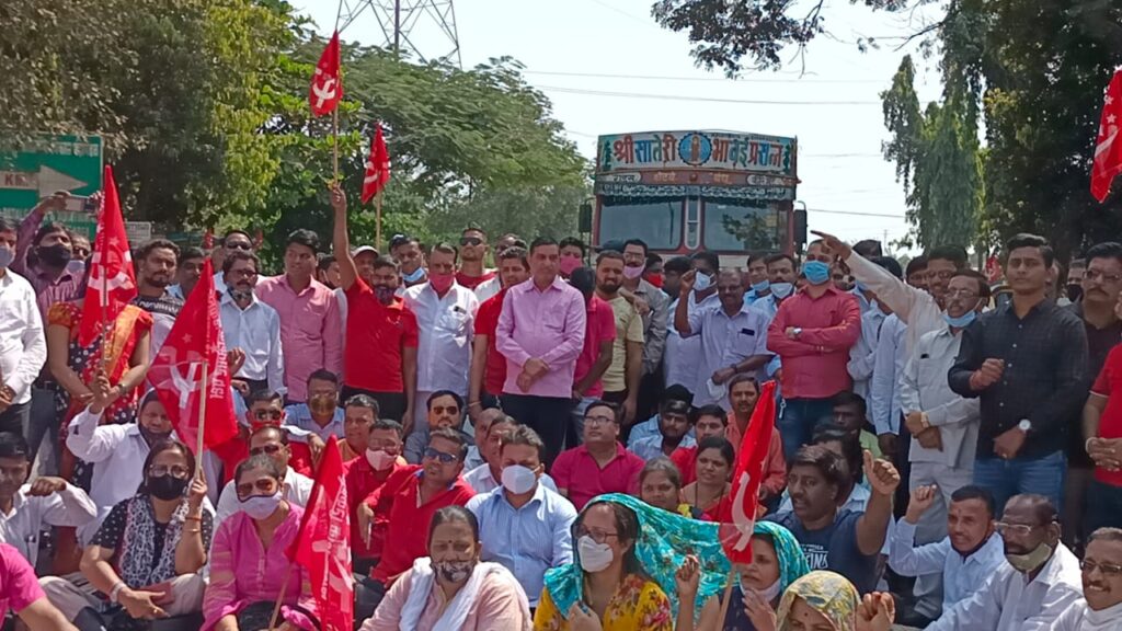 कोन सावळे रस्त्यासाठी शेकाप चे रास्ता रोको आंदोलन