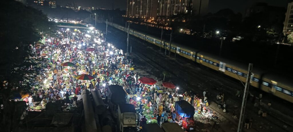 नवीन पनवेल परिसरातील मध्य कोकण रेल्वे मार्गालगत आठवडा बाजार भरवला जात आहे. परंतु, हा बाजार नागरिकांसाठी धोकादायक ठरत आहे. बाजारात खरेदीसाठी येणाऱ्या नागरिकांना रेल्वे रूळ ओलांडून जावे लागत असल्याने मोठा अपघात होण्याची शक्यता व्यक्त केली जात आहे. विशेष म्हणजे ज्येष्ठ नागरिक, महिला वर्ग आणि लहान मुलांसह अनेक कुटुंब जीव धोक्यात घालून या बाजारात येत आहेत.