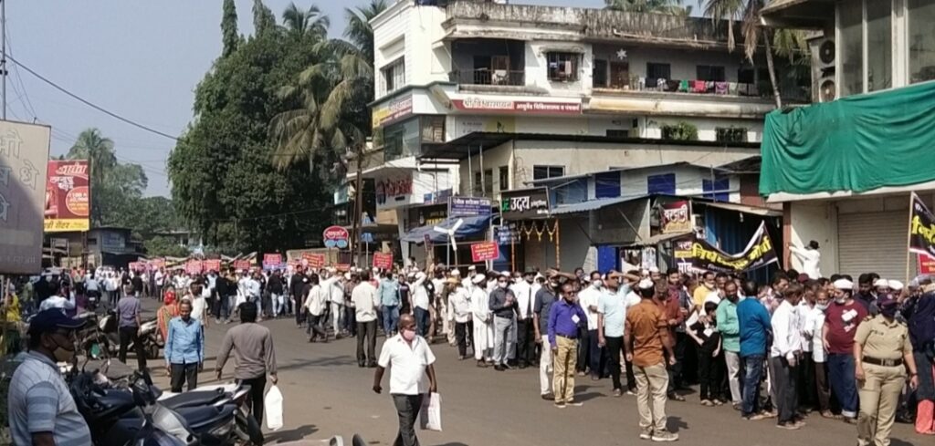 यानुसार संपूर्ण चिपळूण शहरातून भीक मांगो आंदोलन करण्यात आले असून, यास शहरातून भरभरून प्रतिसाद मिळाला. तर नाईक कंपनीच्या येथून मूक मोर्चा काढण्यात आला. यामध्ये असंख्य नागरिक सहभागी झाले होते.