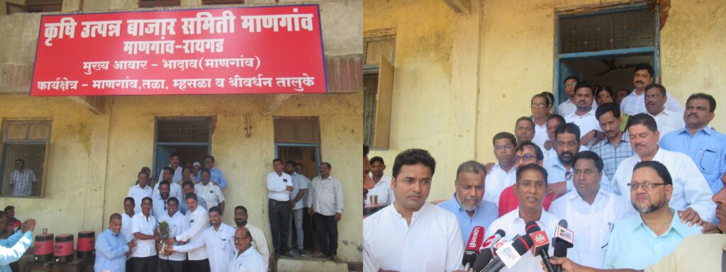 माणगाव, तळा, म्हसळा, श्रीवर्धन कार्यक्षेत्र असलेल्या माणगाव कृषी उत्पन्न बाजार समितीवर शेतकरी कामगार पक्षाचा लाल बावटा पुन्हा एकदा फडकला असून सभापतीपदी शेकापचे माणगाव तालुका चिटणीस रमेश पांडुरंग मोरे तर उपसभापतीपदी श्रीवर्धन तालुक्यातील जसवली गावचे शेकापचे जेष्ठ नेते अल्लाउद्दीन उमर सनगे हे विराजमान झाले आहेत. या दोघांच्या नावावर शिक्कामोर्तब होताच शेकापचे विधानपरिषदेचे आ. जयंतभाई पाटील यांनी दोघांचे दूरध्वनीवरून अभिनंदन करून त्यांना शुभेच्छा दिल्या. तसेच माजी आ. पंडितशेठ पाटील यांनी माणगाव येथे येऊन नवनिर्वाचित सभापती रमेश मोरे व उपसभापती अल्लाउद्दीन सनगे यांचे अभिनंदन केले. या दोघांवर सर्व स्तरांतून अभिनंदनाचा वर्षाव होत आहे.