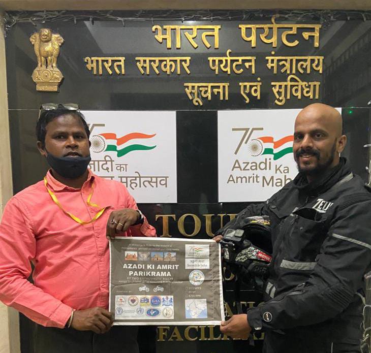 देशाला स्वातंत्र्य मिळून 75 वर्षे पूर्ण झाल्याच्या निमित्ताने देशभरात ‘स्वातंत्र्याचा अमृत महोत्सव’ उत्साहात साजरा करण्यात येत आहे. अमृतमहोत्सवाचे औचित्य साधून रायगड जिल्ह्यातील मुरुड जंजिरा येथील प्रसाद चौलकर आणि पनवेल येथील अभिजित सिंग कोहली हे दोन बाईकस्वार स्वातंत्र्याचा अमृत महोत्सव अनोख्या पद्धतीने साजरा करीत आहेत. मोटारसायकलवर भारतभ्रमण करून देशाच्या गौरवशाली ऐतिहासिक आणि सांस्कृतिक वैभवाचे जगाला दर्शन घडवण्यासाठी हे दोघे बाईकस्वार देशव्यापी बाईक राइडसाठी निघाले आहेत. या परिक्रमेत ‘रस्ता सुरक्षा’सहित ‘एक भारत श्रेष्ठ भारत’, ‘अतुल्य भारत’ आणि ‘देखो अपना देश’ इत्यादींचादेखील प्रामुख्याने प्रचार आणि प्रसार केला जात आहे.