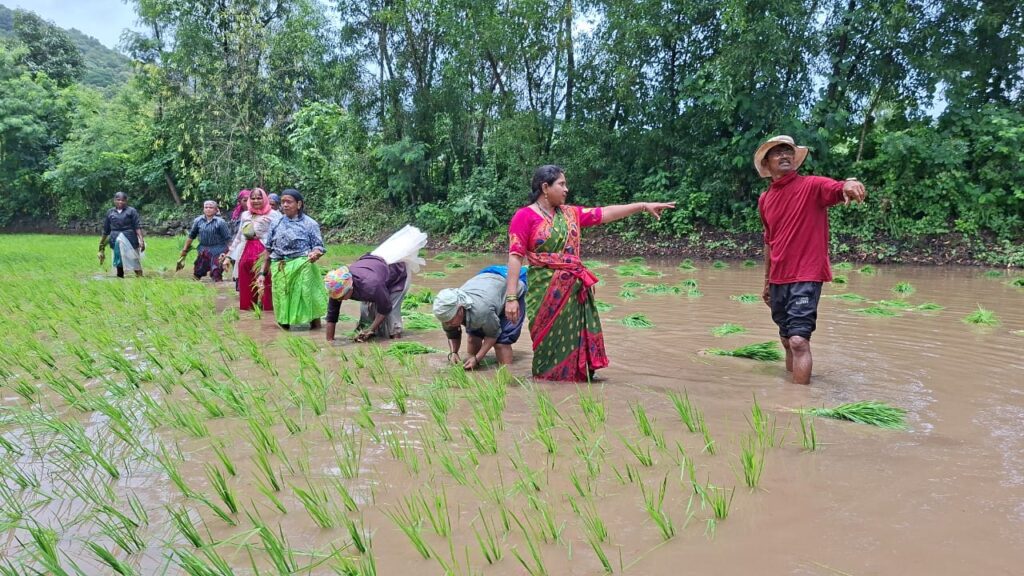 उरण व पनवेल तालुक्यातील चिरनेर, कळंबुसरे, कोप्रोली, साई, दिघाटी, नागाव, केगाव, चाणजे या गावातील परिसरात भात लावणीच्या कामांना सुरुवात झाली आहे. सुरुवातीला आपल्या आगमनाची चाहूल देणाऱ्या पावसाने रायगडकरांना झोडपून काढले होते. त्यामुळे भात पेरणीची कामे व्यवस्थितरित्या न झाल्यामुळे भातरोपांची उगवण हि चांगल्या प्रकारे झाली नव्हती. त्यामुळे रोपे देखील कमकुवत झाली होती. त्यानंतर शेतकऱ्यांनी दुबार भात रोपांची पेरणी करून, सध्या लावणी योग्य अशी रोपे तयार केली आहेत. त्यानंतर पावसाने विश्रांती घेतल्यामुळे अधूनमधून पडणाऱ्या किरकोळ सरींमुळे भातरोपांनी तग धरून ठेवला होता. अशा अवस्थेत भातरोपांची स्थिती असतानाच, पावसाने जिल्ह्यात हजेरी लावून बरसायला सुरुवात केली. त्यामुळे सर्वत्र शेतात चांगले पाणी झाले आहे. शेतीच्या कामांना वेग आला आहे.