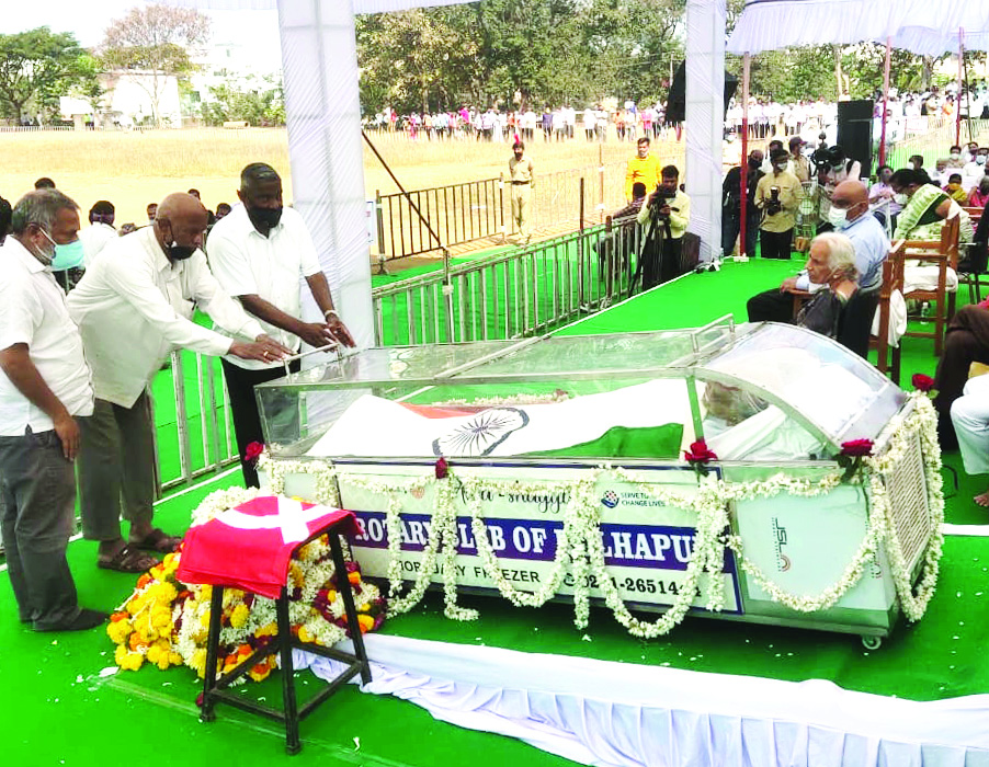 आयुष्यभर शेतकरी कामगार पक्षाचा लालबावटा अभिमानाने खांद्यावर घेऊन गेल्या सात दशकांहून अधिक काळ महाराष्ट्राच्या सामाजिक लढ्याचे नेतृत्व करणारे शेकापचे लढाऊ नेते प्रा. डॉ. एन. डी. पाटील यांना मंगळवारी शासकीय इतमामात आणि शोकाकुल वातावरणात अखेरचा निरोप देेण्यात आला. त्यांच्या पार्थिवावर सरकारच्यावतीने तिरंगा लपेटण्यात आला.त्याचबरोबर अखेरच्या प्रवासातही लालबावटा अंगावर लपेटून घेत या लोकनेत्याने या जगाचा निरोप घेतला.