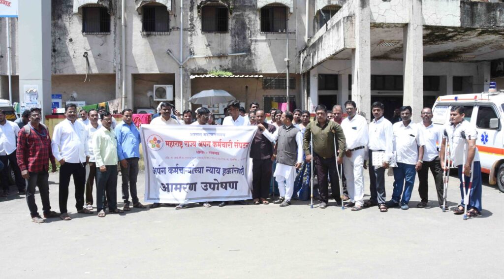 दिव्यांग कर्मचाऱ्यांच्या न्याय हक्कासाठी रायगड जि.प. समोर उपोषण