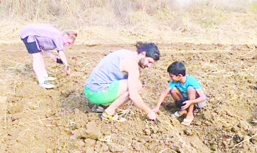तुषार यांनी आपल्या शेतामध्ये कलिंगड लागवड करण्यास सुरुवात केली आहे. यावेळी जमिनीची मशागत करणे, मातीचे आळे बनवणे आणि कलिंगडाच्या बिया लावणे, त्यांना पाणी देणे आदि कामे टायबेरियस व त्याची पत्नी आमंडा मन लावून करताना दिसत आहेत. याशिवाय वेगवेगळ्या प्रकारचा भाजीपाला लागवडदेखील या दांपत्यांनी केली आहे. शेतीची विविध कामे करण्यात ही दांपत्य रामतांना दिसत आहेत. त्यांच्या जोडीला तुषार केळकर यांचा छोटा मुलगा राहीदेखील मदत करतो.