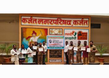 Read moreDetails| नेरळ | प्रतिनिधी |कर्जत शहरात नागरपरिषदेकडून स्वच्छता पंधरवडा राबविण्यात आला. शहर स्वच्छ ठेवण्यासाठी महत्वाची भूमिका बजावणाऱ्या स्वच्छता कर्मी यांचा ...