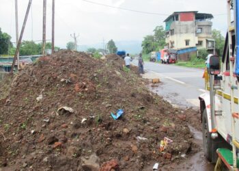 माणगाव-मोर्बा रस्त्यावर मातीचे ढिगारे