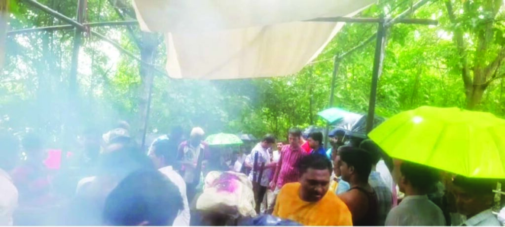 भरपावसात ताडपत्री बांधून अंत्यविधी