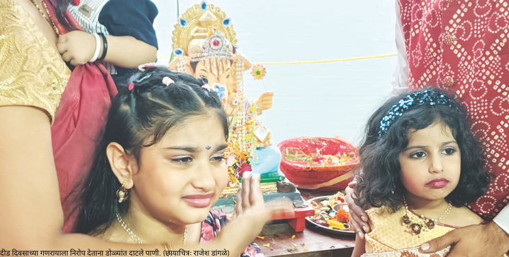 विसर्जन समयी पावसानेही थोडी उसंत घेतली होती. गावातून निघालेल्या विसर्जन मिरवणुकीत असंख्य लहान थोर मंडळीसह ज्येष्ठ नागरिक, महिला वर्ग सुद्धा सहभागी झाले होते. अवघी दोन दिवस देवबाप्पाची सेवा करण्यासाठी मिळाल्याने विसर्जनावेळी भावपूर्ण निरोप देताना काही चिमुकल्यांच्या डोळ्यांच्या कडा ओल्या झाल्याचे पहावयास मिळाले.