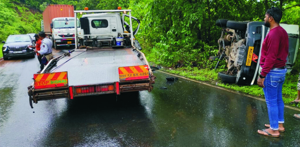 या अपघातात टोईंग व्हॅनवरील चालक रोशन अरविंद पांचाळ (वय 25 रा. सिध्दार्थ नगर जि. अमरावती) याच्या उजव्या पायाला गंभीर दुखापत झाली असून, इसूजु पिकअप टेम्पोच्या चालकासोबतचे प्रवासी हजरत हसनमिया जसनाईक (वय 29 रा.खेड) यांच्या डाव्या हाताला किरकोळ दुखापत झाली.