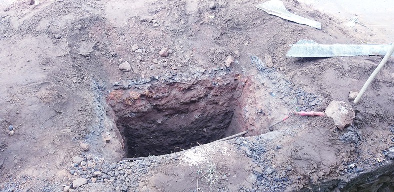 केबलसाठी खणलेल्या खड्ड्यात दुचाकी कोसळली