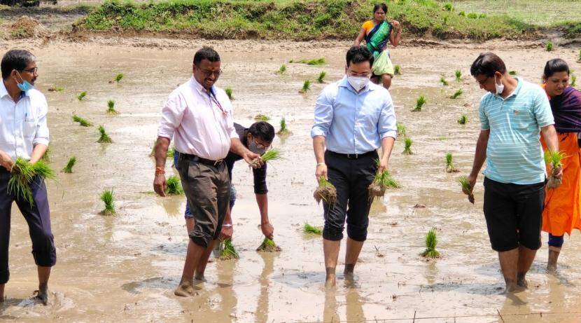 जिल्ह्याचे जिल्हाधिकारी दीपक सिंगला यांनी साखरा गावातील शेतकर्याच्या शेतात जावून प्रत्यक्ष भात रोवणी केली. जिल्ह्यात दमदार पावसानंतर सर्वच शेतकर्यांनी भात रोवणीला सुरूवात केली आहे. साखरा गावात कृषी विभागाने आयोजित केलेल्या रोवणी कार्यक्रमाचा जिल्हाधिकारी यांचे हस्ते शुभारंभ करण्यात आला. यावेळी त्यांनी उत्पन्न वाढीसाठी शेतकर्यांना आता यांत्रिकीकरण स्विकारले पाहिजे ,असे आवाहन शेतकर्यांना केले.