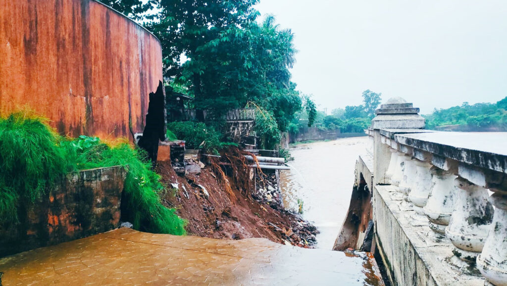 मुसळधार पावसाचा फटका अनेकांना बसला. त्यातच पनवेल तालुक्यातील कोप्रोली येथील अरिहंत अरहम सोसायटीच्या पाठीमागील बाजूस असलेल्या कंपाउंडची भिंत कोसळली. त्यामुळे येथील रहिवासी भयभीत झाले आहेत. पावसामुळे सगळीकडे दाणादाण उडाली होती. नद्या नाल्यांना पूर आले होते. अनेकांच्या घरांमध्ये पाणी शिरले. कोप्रोली येथील अरिहंत अरहम सोसायटीच्या पाठीमागून नदीच्या बाजूला असलेले कंपाऊंड भिंत रविवारी सकाळच्या सुमारास कोसळली. सकाळी मोठा आवाज झाल्याने रहिवासी त्या ठिकाणी पाहायला गेल्याने गर्दी झाली होती.