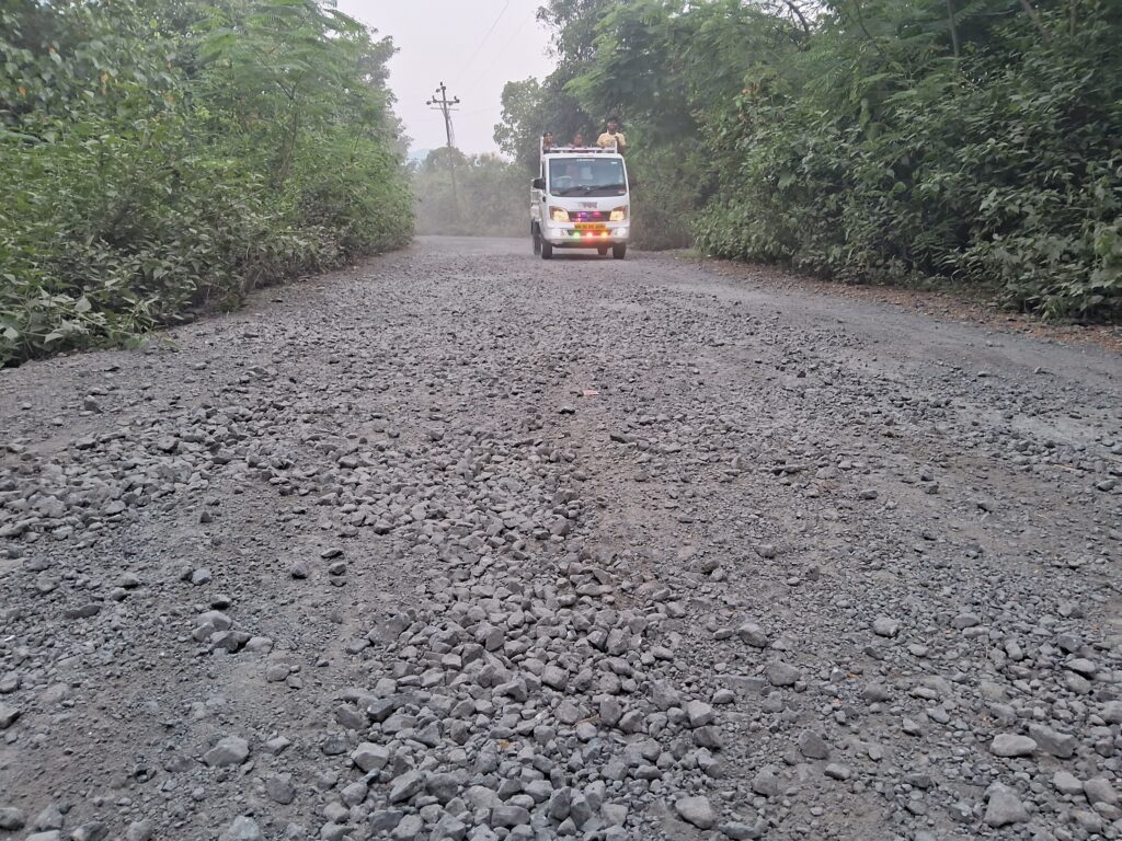 रस्त्यावर पडलेल्या खडीमुळे अपघाताची भीती