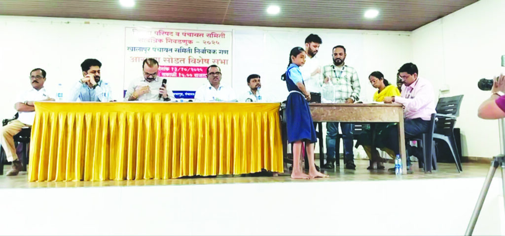 खालापूर पंचायत समिती प्रभागाचे आरक्षण खालापूर पंचायत समितीच्या सभागृहात सोडत पद्धतीने खालापूर तहसीलदार अभय चव्हाण यांनी दोन शाळकरी मुलांच्या हातून चिठ्ठीद्वारे जाहीर केले.