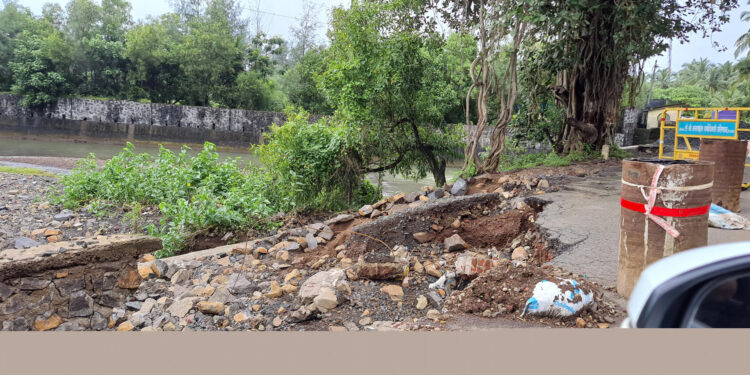 अलिबागवरून मुरुडकडे येताना काशीद-चिकणी गावाजवळील पुलाचा भराव खचून वाहून गेल्याने यावरून होणारी प्रवाशी वाहतूक धोक्यात आल्याचे सोमवारी सकाळी दिसून आले. हा पूल आधिच खचल्याने एकेरी वाहतुक सुरू होती. आता पुन्हा भराव खचल्याने हळूहळू रस्ताच वाहून जाईल असे दिसून येत आहे.