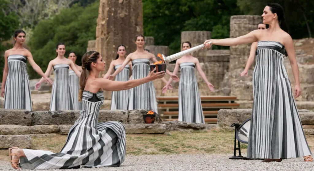 याप्रसंगी खराब हवामान असल्यामुळे पारंपरिक पद्धतीने ज्योत प्रज्वलित करण्यात अपयश आले. ग्रीक महिला पुजार्यांच्या हस्ते सूर्यकिरणच्या साहाय्याने या ज्योतीचे प्रज्वलन करता आले नाही. सोमवारी ज्योत प्रज्वलित करण्याची रंगीत तालीम घेण्यात आली होती. तीच ज्योत मंगळवारी प्रज्वलित करण्यासाठी वापरण्यात आली. आता पाच हजार किलोमीटरचा प्रवास करून ही ज्योत अथेन्स येथे पॅरिस ऑलिंपिक आयोजकांच्या हातामध्ये सुपूर्द करण्यात येणार आहे. 11 दिवसांचा ज्योतीचा प्रवास 26 एप्रिल रोजी संपेल.